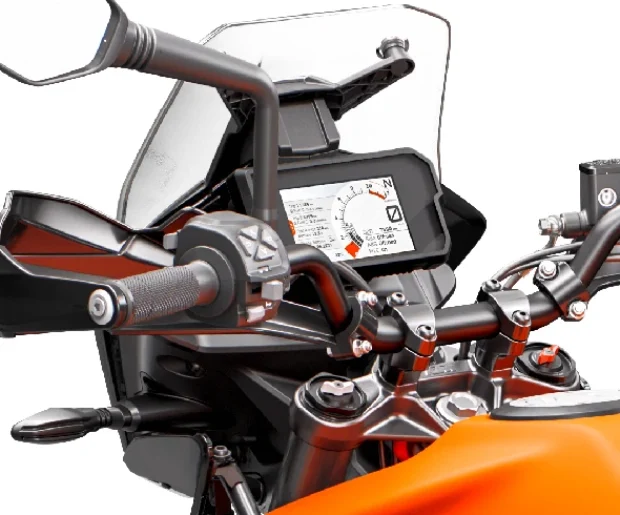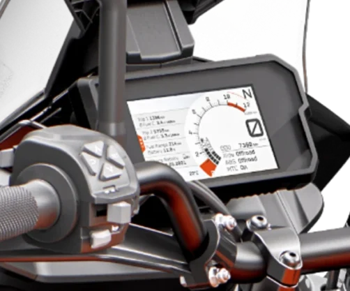 MTC on the KTM 390 Adventure is aided by 3D IMU (intertial measurement unit). This Lean-angle sensitive traction control system reacts when the instant rear wheel rotation speed becomes disproportionate to the riding situation and optimizes depending on your selected ride mode.
