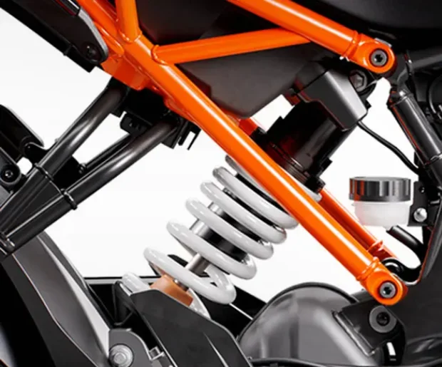 The KTM 125 DUKE comes with ultra-lightweight, high-performance upside-down WP forks as standard. Using the latest technology, these forks not only perform flawlessly when pushed to the limit, but also allow riders to cruise comfortably on longer stretches of tarmac.