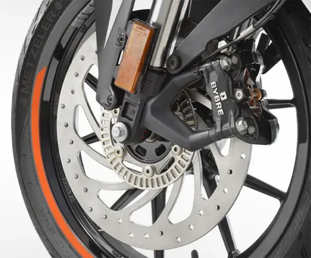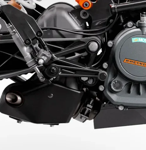 As light as they are stable, the 17-inch cast alloy racing wheels help you put the power down with confidence. Wrapped in premium rubber, the pro-spec tires will keep your KTM glued to the road.