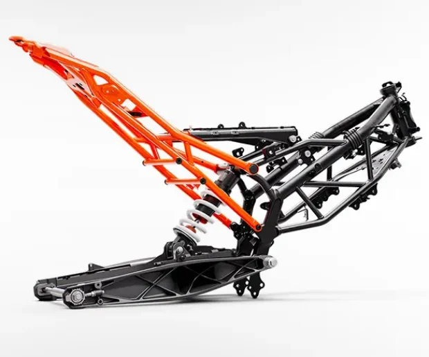 - A new stiffer, lightweight split-trellis frame