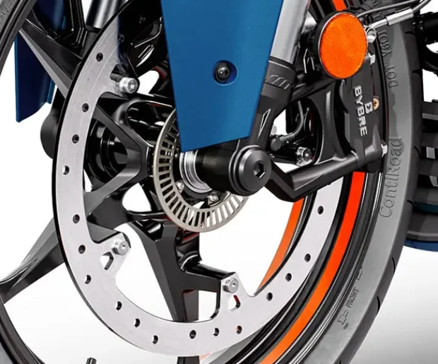 Get pro level stopping power with 320 mm front disc & 230 mm rear disc
