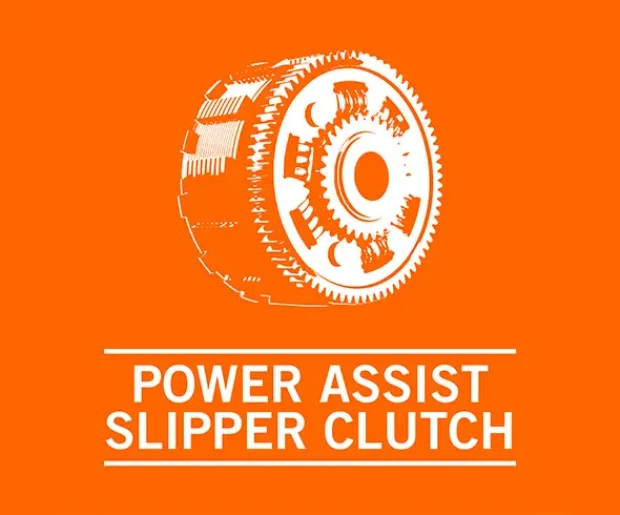 The Power Assisted Slipper Clutch not only does open when the engine back-torque becomes too high, it also assists when you open the throttle which can be controlled with just one trigger-happy finger